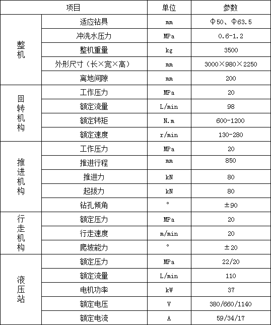 1. 履帶行走,大大提高移鉆、穩(wěn)鉆的效率,顯著減輕工人的體力勞動強(qiáng)度;